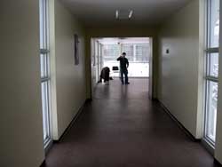 Nous avons choisi la passerrelle de l'UQAT comme endroit pour notre installation. Ses longs corridors ainsi que son espaces plus important au centre ainsi que ses grandes fenêtres nous ont tout de suite séduit.